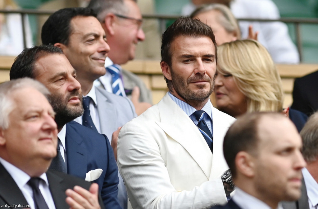 تحظى منافسات بطولة ويمبلدون، ثالثة البطولات الأربع الكبرى في كرة المضرب، باهتمام ديفيد بيكهام نجم الكرة الإنجليزية.. وفي الصورة بيكهام يتابع مواجهة الإيطالي ماتيو بيريتيني والبولندي هوبرت هوركاش في نصف النهائي من المدرجات (رويترز)