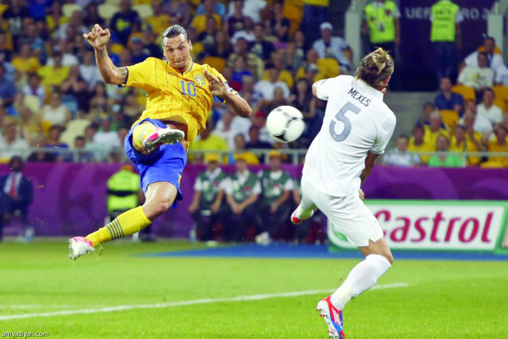 صورة التقطت لإبراهيموفيتش، مهاجم منتخب السويد، يسدد كرة سكنت شباك فرنسا في يورو 2012 (أرشيفية)