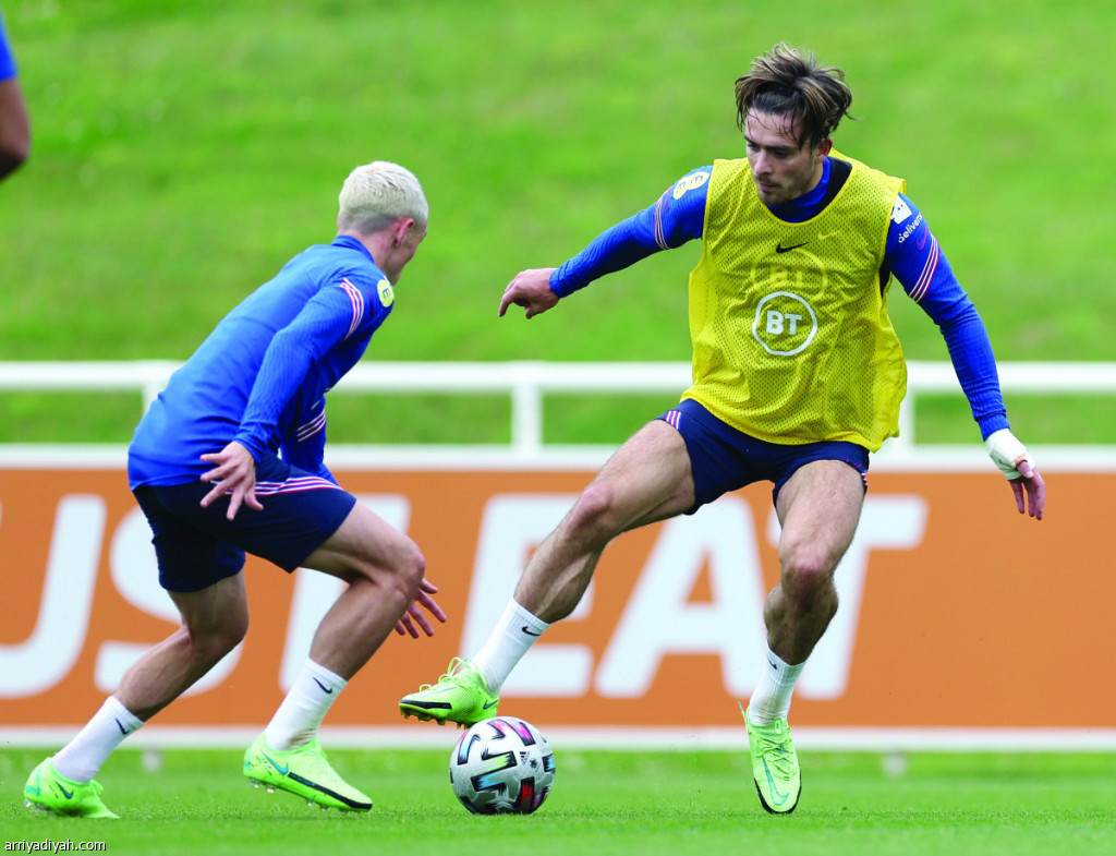 صورة التقطت أمس الأول لفودين لاعب منتخب إنجلترا “يسارًا” خلال التدريبات(المركز الإعلامي ـ منتخب إنجلترا)