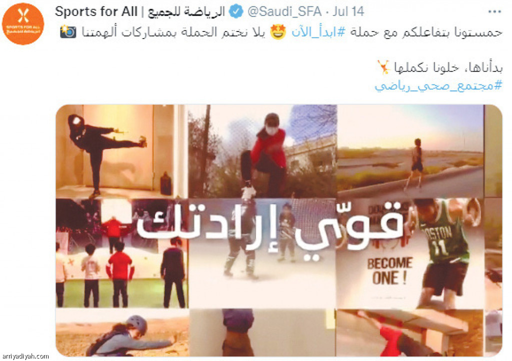 اختتمت الحملة الوطنية الرياضية #ابدأ_الآن لتشجيع كافة أفراد المجتمع على المشاركة في الأنشطة البدنية بأكثر من 228 ألف تفاعل على مختلف منصات التواصل الاجتماعي بعد ثلاثة أشهر من انطلاقها.