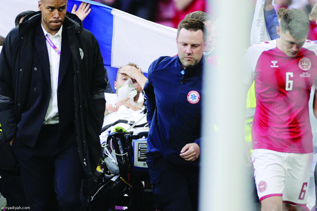 صورة التقطت لإريكسن لحظة نقله إلى المستشفى بعد إنعاشه قلبيًا داخل الملعب (أرشيفية)