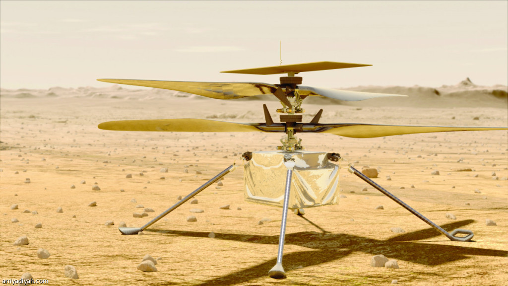 صورة التقطت للمروحية إنجنيتي قبل تحليقها في إحدى المهام على كوكب المريخ(المركز الإعلامي ـ ناسا)