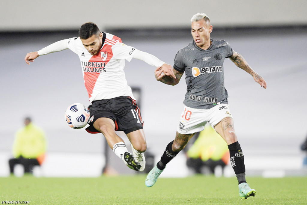 صورة التقطت أمس لدياز لاعب الريفر وفارجاس لاعب مينيرو يتنافسان على الكرة أثناء المباراة(الأوروبية)
