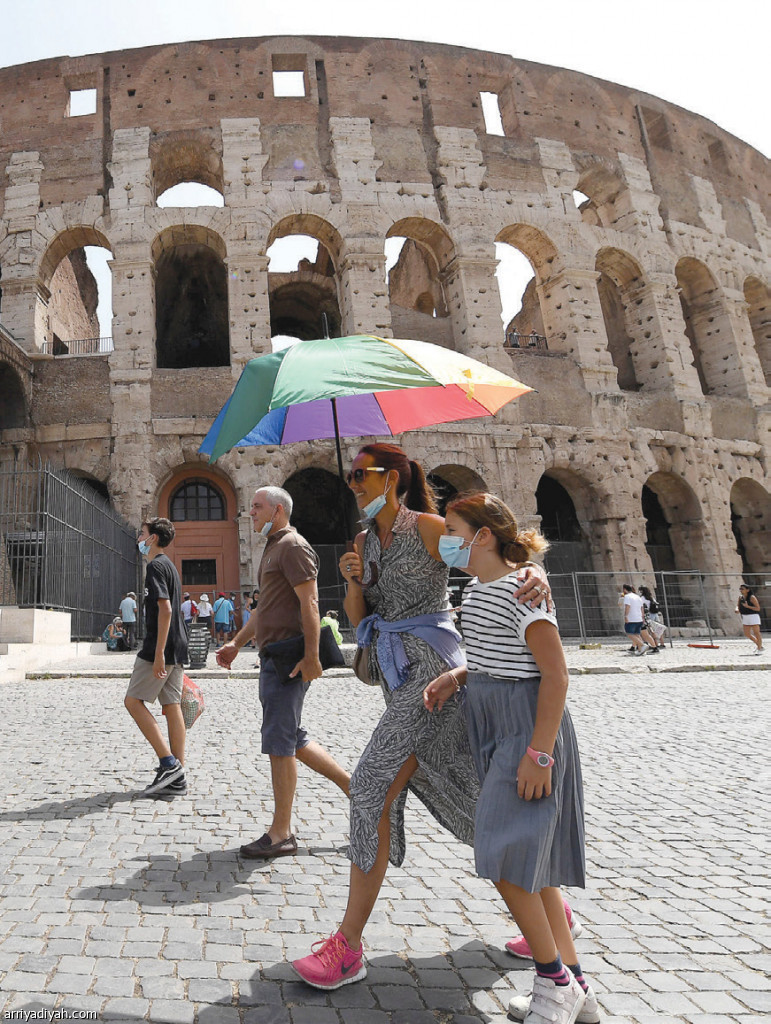 عجّ الوسط التاريخي لمدينة روما، عاصمة إيطاليا، بالسياح نهاية الأسبوع الجاري على الرغم من وضع السلطات عددًا من المدن في حالة تأهب أحمر بسبب التأثير المحتمل لارتفاع درجة الحرارة على صحة السكان المتزامن مع تعرض البلد الأوروبي إلى موجة حرائق الغابات العالمية.
