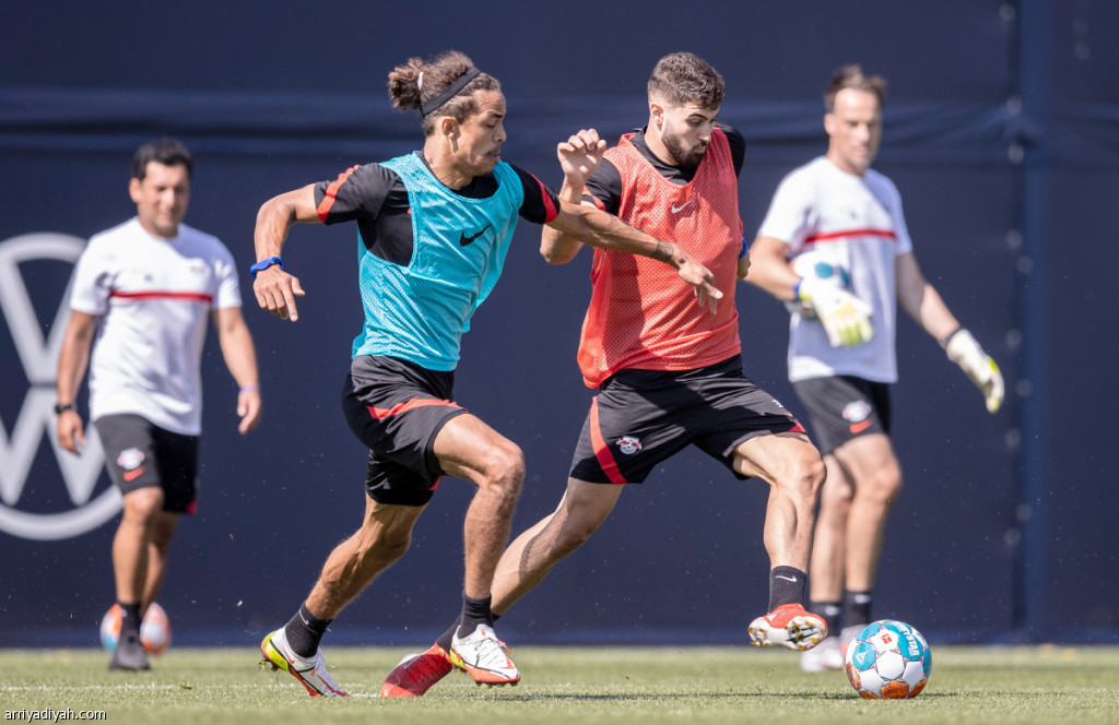 صورة التقطت أمس من تدريبات لايبزيج ويظهر فيها بنيامين ومارسيل(المركز الإعلامي - لايبزيج)