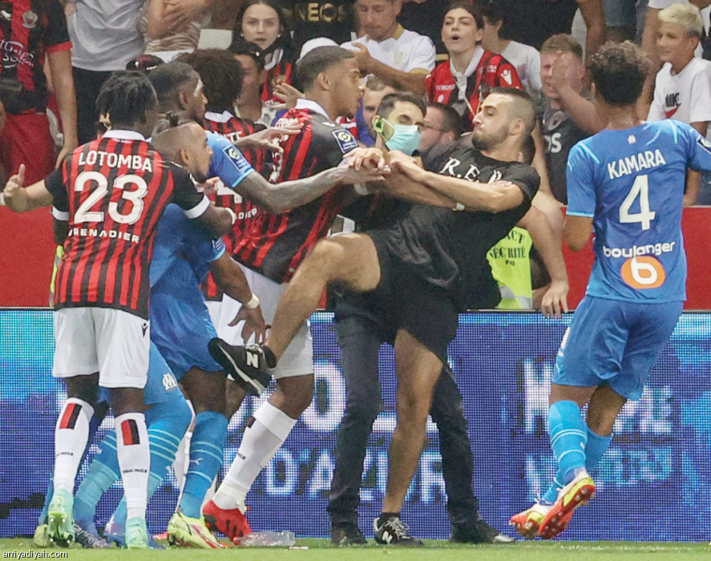 وبدأت الأحداث عندما ألقت جماهير نيس قوارير مياه على ديميتري باييه، لاعب مرسيليا، عندما كان في طريقه لتنفيذ ركلة ركنية، ورد اللاعب بالمثل تجاه المشجعين قبل أن يقتحموا أرض الملعب ليشتبكوا معه ومع زملائه.