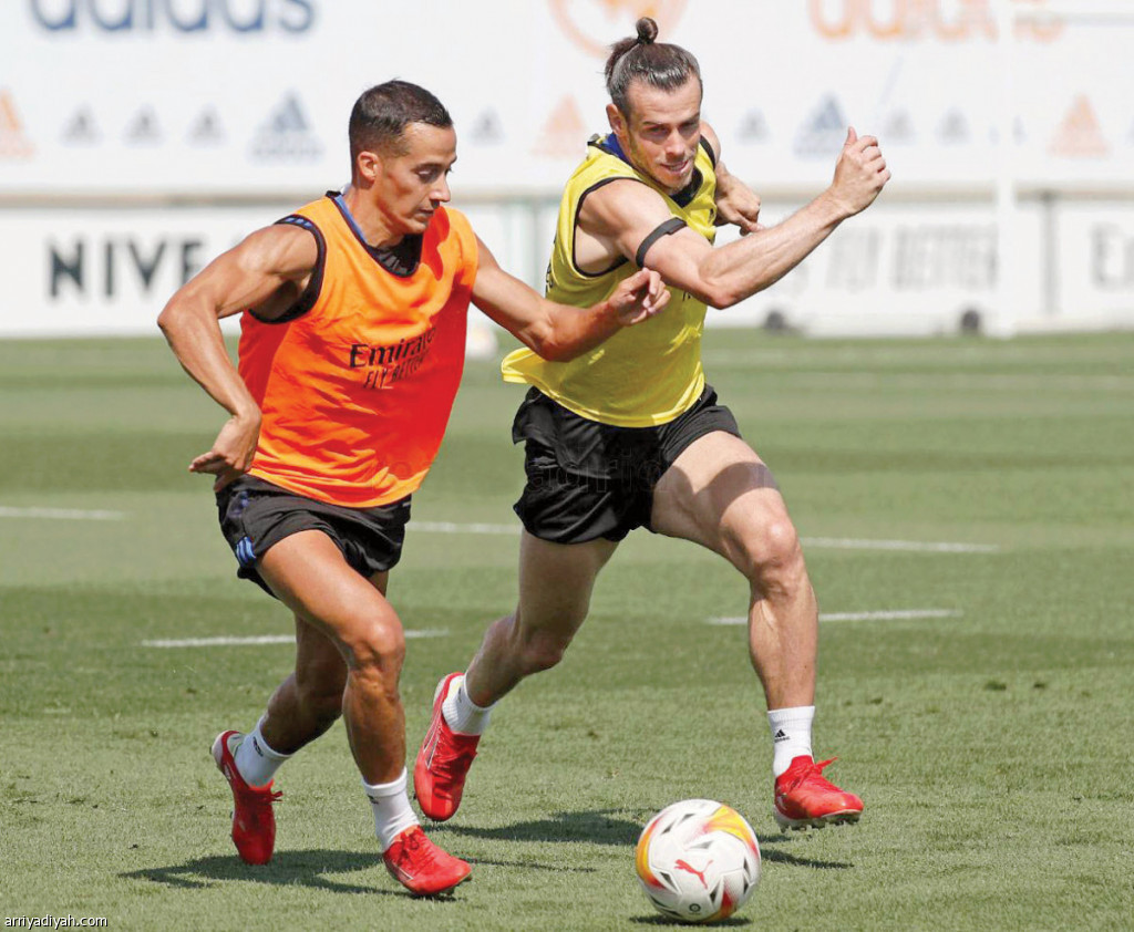 صورة التقطت أمس لفاسكيز وبيل لاعبي الريال أثناء التدريبات (المركز الإعلامي - ريال مدريد)