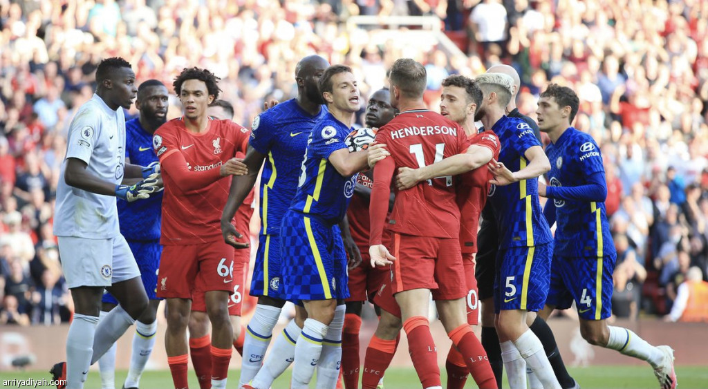 واشتبك لاعبو تشيلسي مع منافسيهم وأنطوني تيلور الحكم، بعد طرد ريس جيمس المدافع، بسبب لمسة يد أهدت ليفربول ركلة جزاء نفذها محمد صلاح قبل نهاية الشوط الأول.