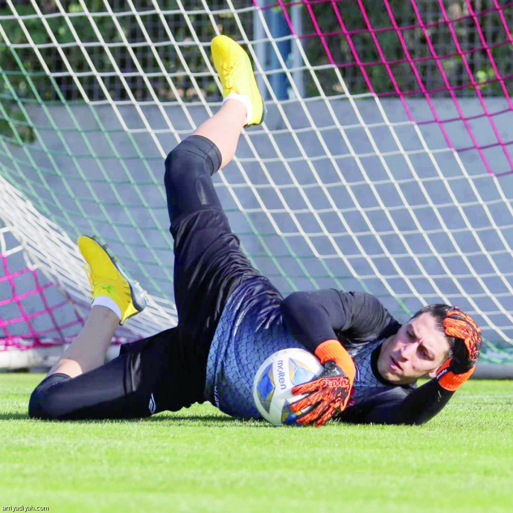 صورة التقطت أمس الأول لمحمد رضا حارس مرمى تراكتور الإيراني يمسك بالكرة خلال التدريبات (المركز الإعلامي ـ تراكتور)