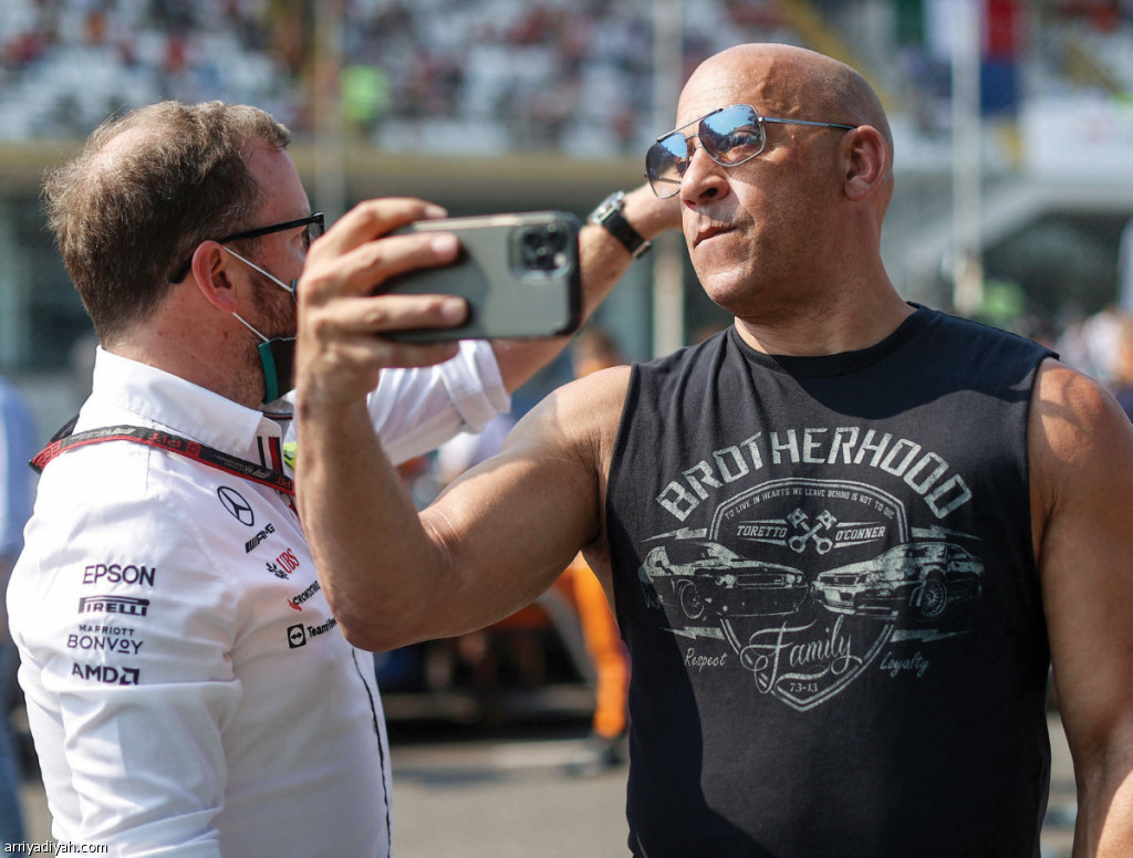 صورة التقطت أمس للفين دينزل الممثل الأمريكي يلتقط صورة سيلفي داخل حلبة ناشيونالي موانزا ضمن سباق الجائزة الكبرى لفورمولا 1 في إيطاليا