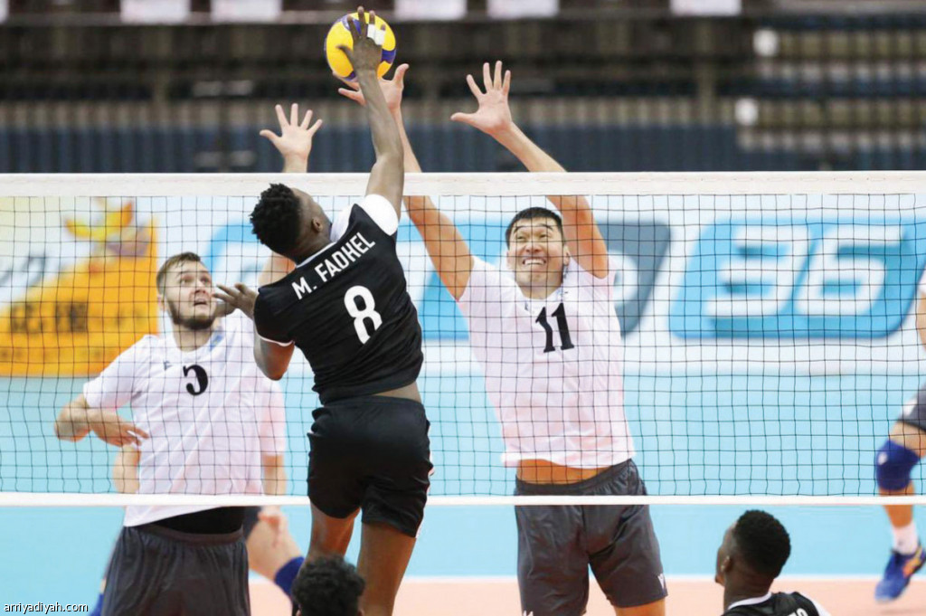 صورة التقطت أمس لأحد لاعبي المنتخب السعودي يسدد كرة في اتجاه ملعب المنتخب الكازاخي (المركز الإعلامي ـ اتحاد الطائرة)