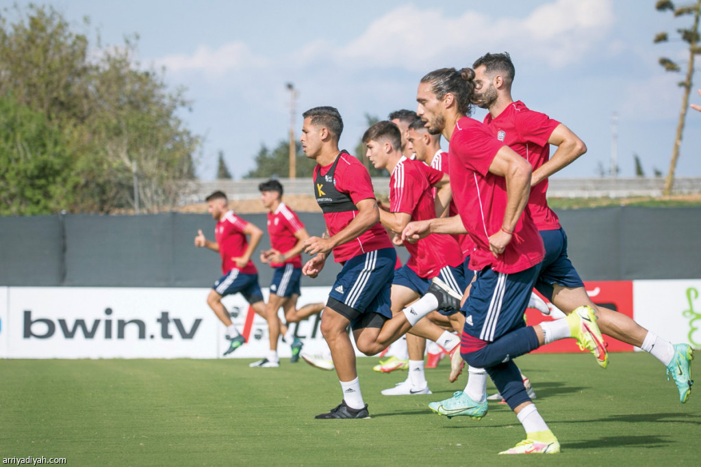 صورة التقطت أمس للاعبي فريق كالياري الإيطالي الأول لكرة القدم يجرون عمليات الإحماء قبل انطلاق التدريبات التكتيكية (المركز الإعلامي ـ كالياري)