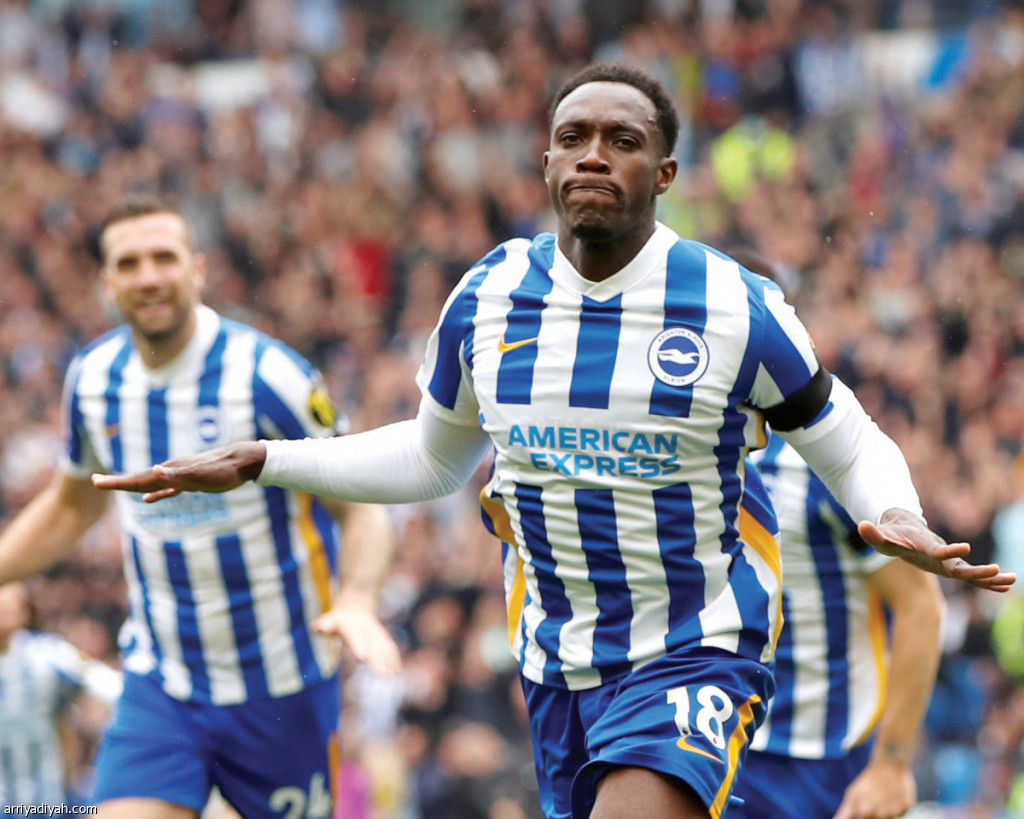 صورة التقطت أمس لداني ويلبيك لاعب فريق برايتون آند هوف ألبيون بعد تسجيله الهدف الثاني والفوز على ليستر سيتي (رويترز)
