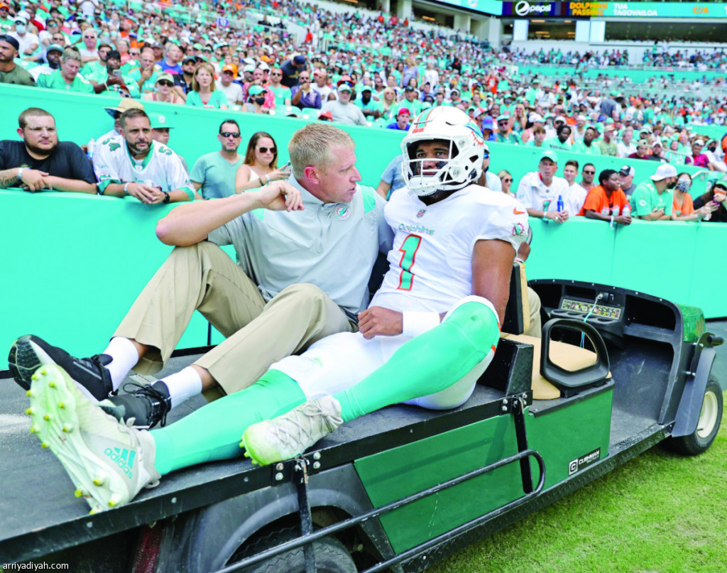 غادر توا تاجوفيلوا، لاعب فريق ميامي دولفينز الأمريكي، مباراته أمام بافالو بيلز في دوري كرة القدم الأمريكية على ملعب هارد روك إثر تعرضه لإصابة خلال ربعها الأول.. وأظهرت الفحوصات الطبية نجاته من أي إصابات خطيرة باستثناء كدمات متفرقة في الضلوع..