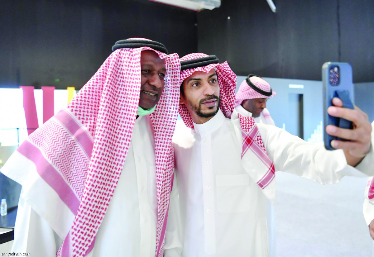 صورة التقطت الأربعاء الماضي لماجد عبد الله، أسطورة الكرة السعودية، يأخذ “سيلفي” مع أحد رواد معرض الرياض الدولي للكتاب تصوير: بشير صالح