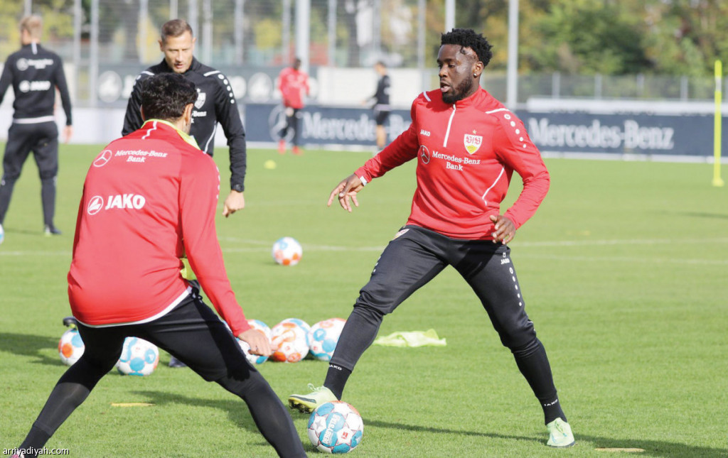 صورة التقطت أمس لمانجالا لاعب شتوتجارت أثناء التدريبات (المركز الإعلامي ـ شتوتجارت)