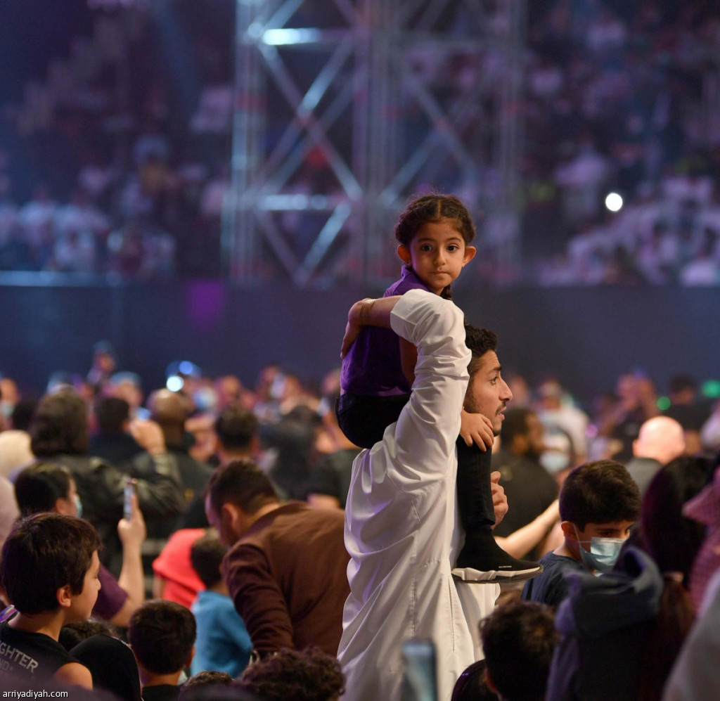 صوره التقطت أمس من عروض “كراون جول”، التي شهدت تنافسًا كبيرًا من قِبل المصارعين، وجرت على حلبة البوليفارد في الرياض ضمن موسم الرياض 2021.. طفلة على كتفي والدها خلال حضورهما النزالات