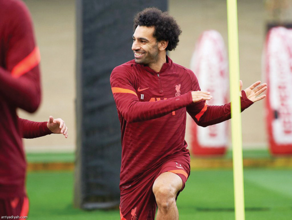 صورة التقطت أمس الأول لصلاح، لاعب ليفربول، خلال التدريبات (المركز الإعلامي ـ ليفربول)