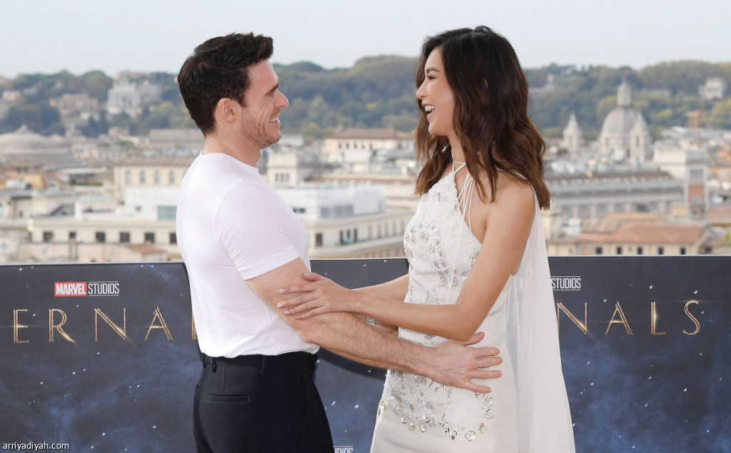 تبدأ دور العرض الإيطالية في عرض فيلم “الأبدية” نوفمبر المقبل.. وفي الصورة التي التقطت أمس حيمان تشان، الممثلة البريطانية، وريتشارد مادن، الممثل الإسكتلندي، أثناء تصوير الفيلم