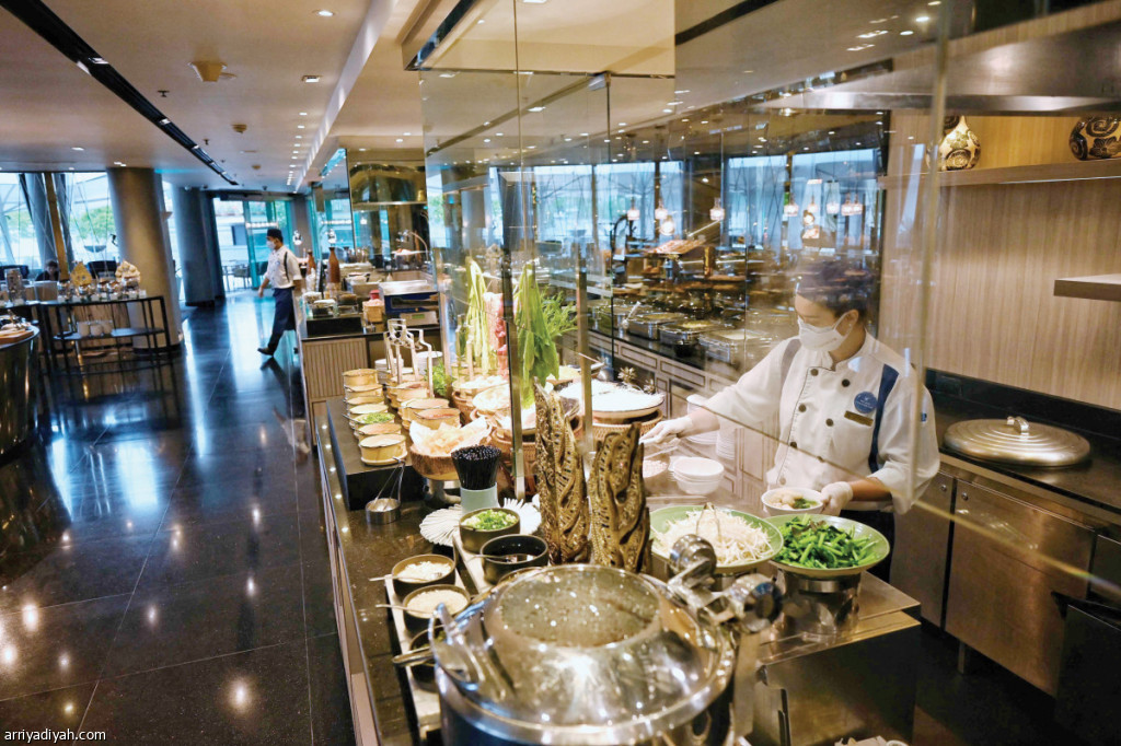 صورة التقطت أمس لشيف يحضّر إفطارًا في أحد فنادق بانكوك (الفرنسية)