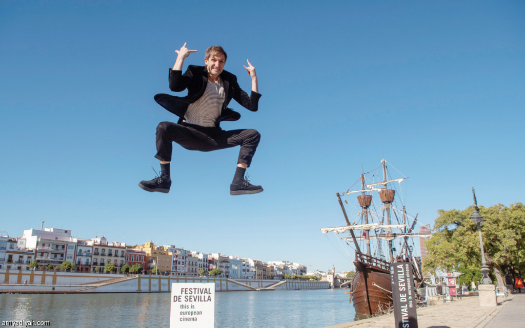 تستمر فعاليات مهرجان الفيلم الأوروبي الـ 18 من 5 إلى 13 نوفمبر الجاري في مدينة إشبيلية، جنوب إسبانيا، وسط تنافس 21 فيلمًا على جوائزه.. وفي الصورة التي التقطت أمس جوليان فيلاجران، الممثل الإسباني، يقفز خلال حضوره عروض المهرجان (الأوروبية)
