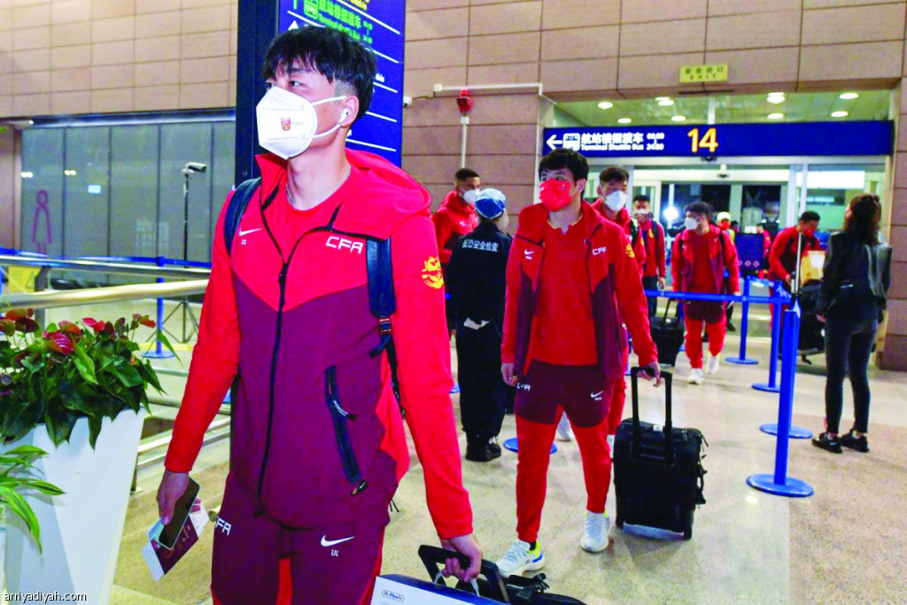 صورة التقطت أمس للاعبي منتخب الصين الأول لكرة القدم أثناء وصولهم إلى مطار دبي استعدادًا لمواجهة عمان (الموقع الرسمي لمنتخب الصين)