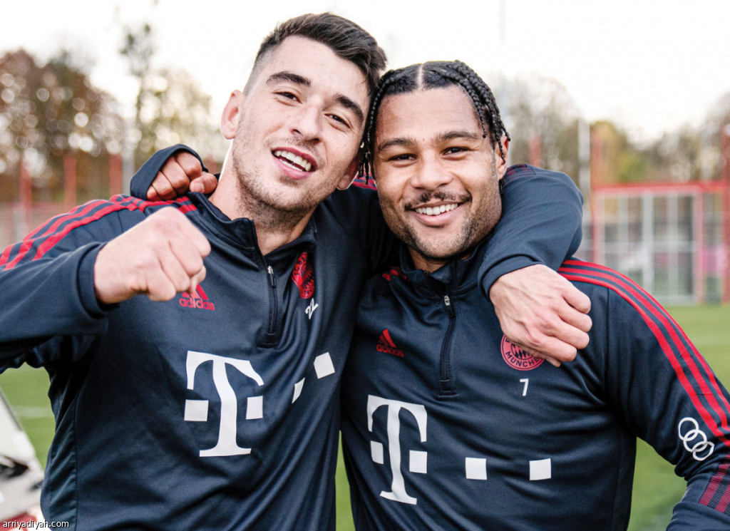 صورة التقطت أمس لجنابري وروكا، لاعبي فريق بايرن ميونيخ الأول لكرة القدم، خلال التدريبات (المركز الإعلامي ـ بايرن ميونيخ)