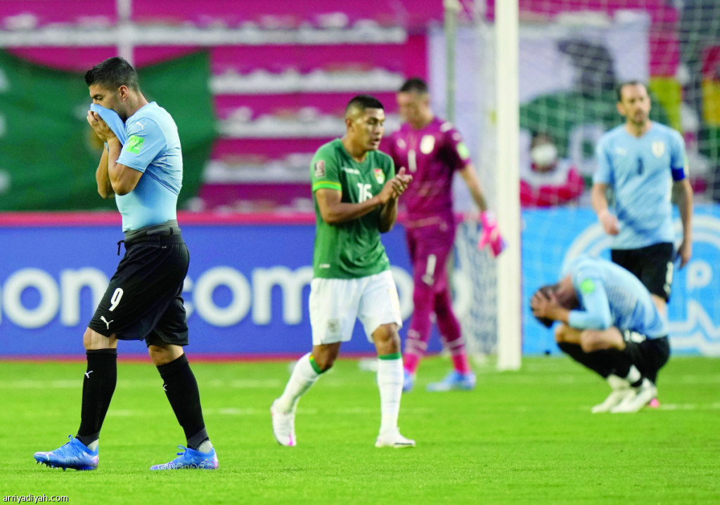 خسر منتخب أوروجواي الأول لكرة القدم بشكل مفاجئ 3ـ0، أمام بوليفيا أمس، ليصبح مهددًا بالغياب عن نهائيات كأس العالم 2022 لكرة القدم قبل أربع جولات من نهاية تصفيات أمريكا الجنوبية.