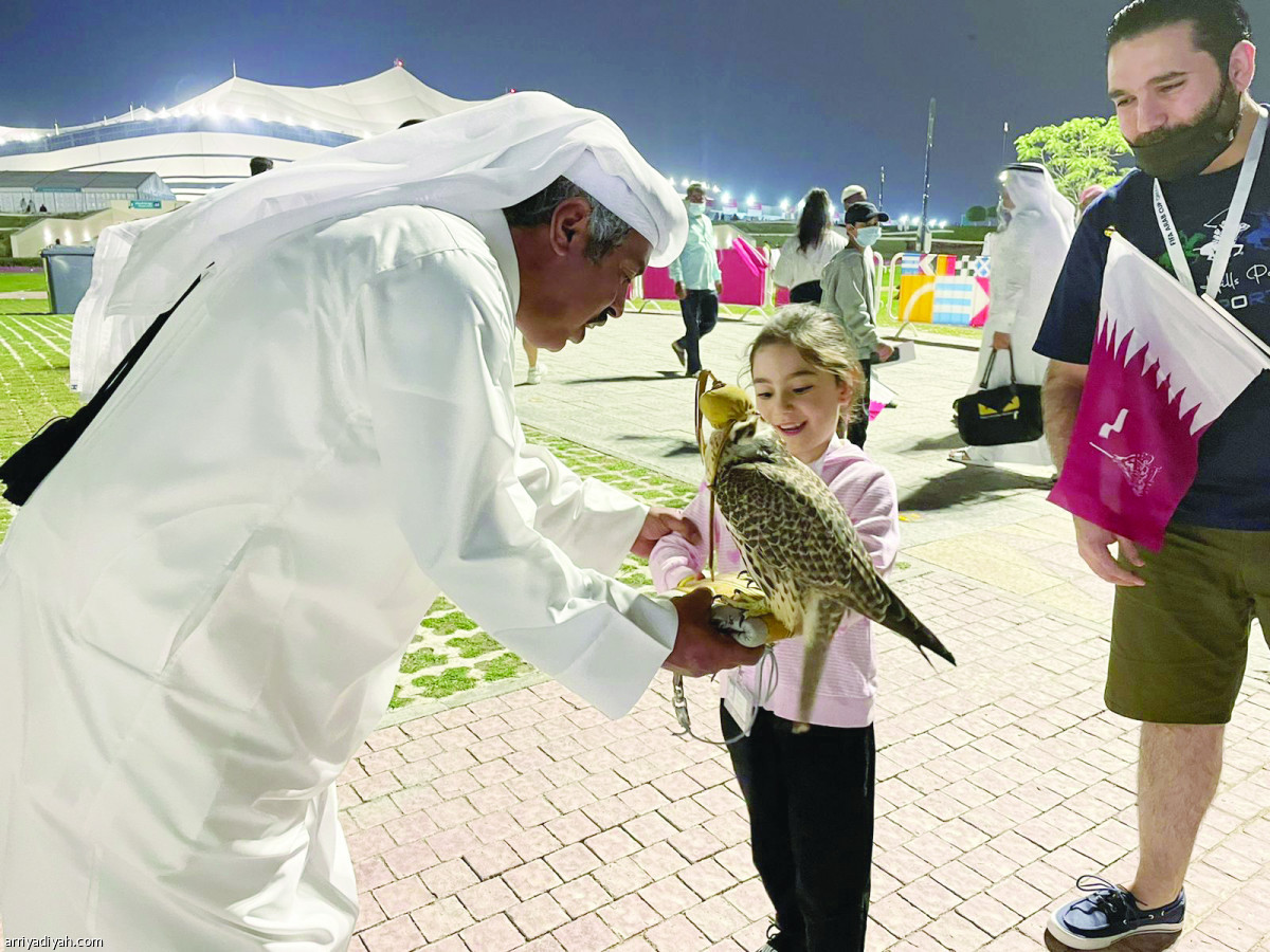 شهدت الساحات الخارجية لملعب “البيت” في الدوحة، العاصمة القطرية، فعاليات متنوعة قبل افتتاح بطولة كأس العرب التي حضرها جمهور غفير. وكانت أبرز الفعاليات تلك الخاصة بالتراث والبيئة القطرية، منها الصقارون الذين قدموا عروضهم حول كيفية ترويض الصقور.. وفي الصورة التي التقطت أمس طفلة تمسك أحد الصقور أمام الملعب.