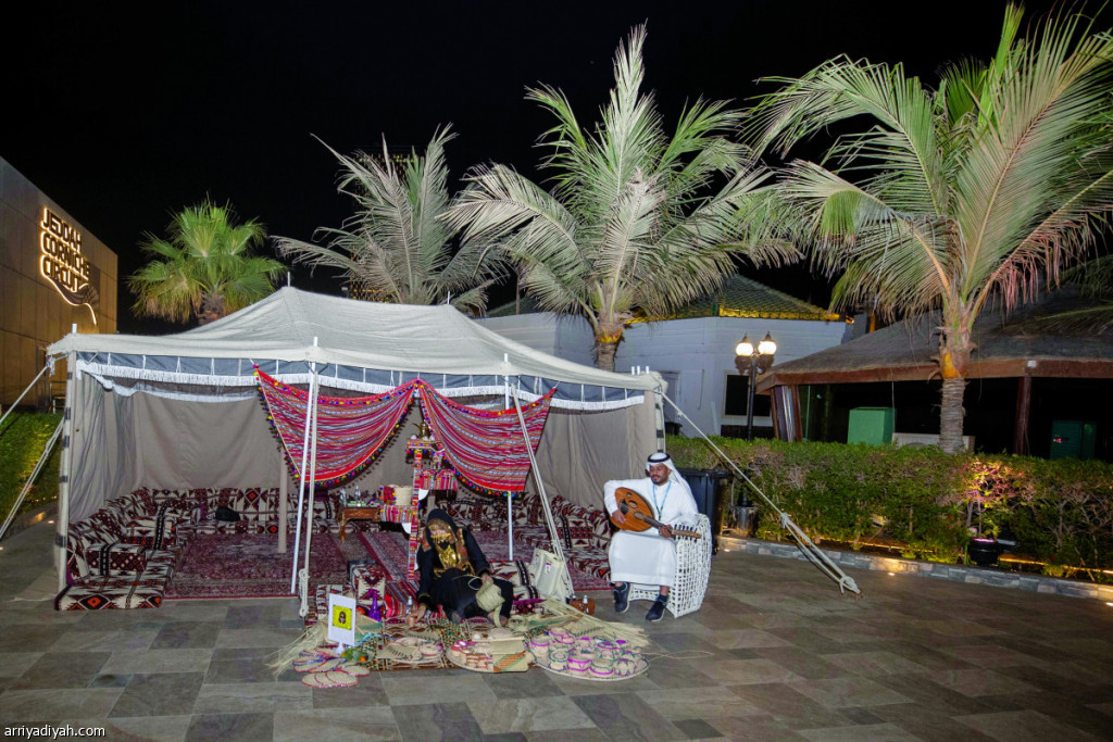 ونصبت وزارة الثقافة الخيمة داخل الجزيرة بمحاذاة البحر، وقدّم سعودي وسعودية عبرها نشاطي العزف على آلة العود وصناعة مشغولات يدوية من سعف النخيل.