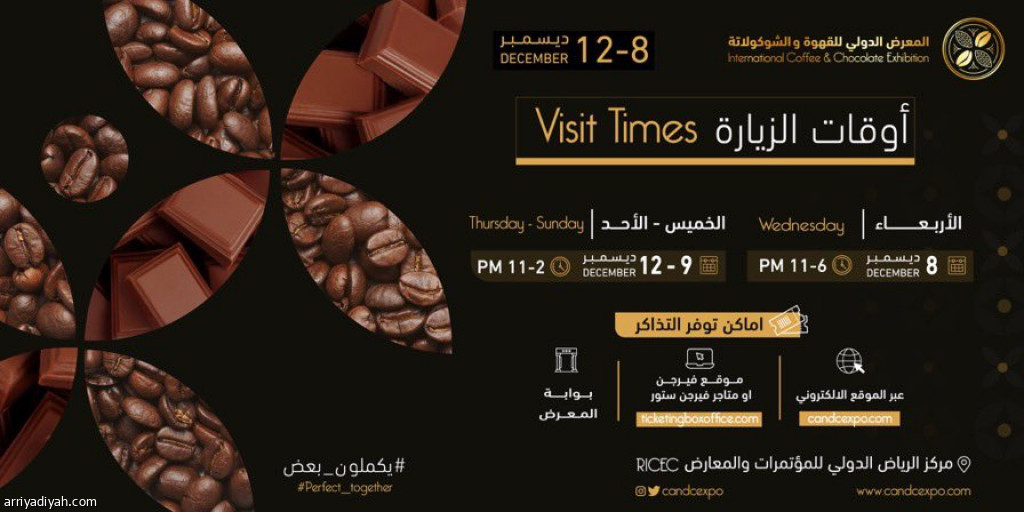 جذب المعرض الدولي للقهوة والشوكولاتة في نسخته السابعة، الذي ينظم في الرياض، العاصمة السعودية، أكثر من 300 شركة من 30 دولة، مستهدفًا نشر مفاهيم متعددة عن ثقافة دول العالم حول هذه الثقافة العربية العريقة، ليصبح وجهةً اقتصادية جديدة للمستثمرين في السعودية.