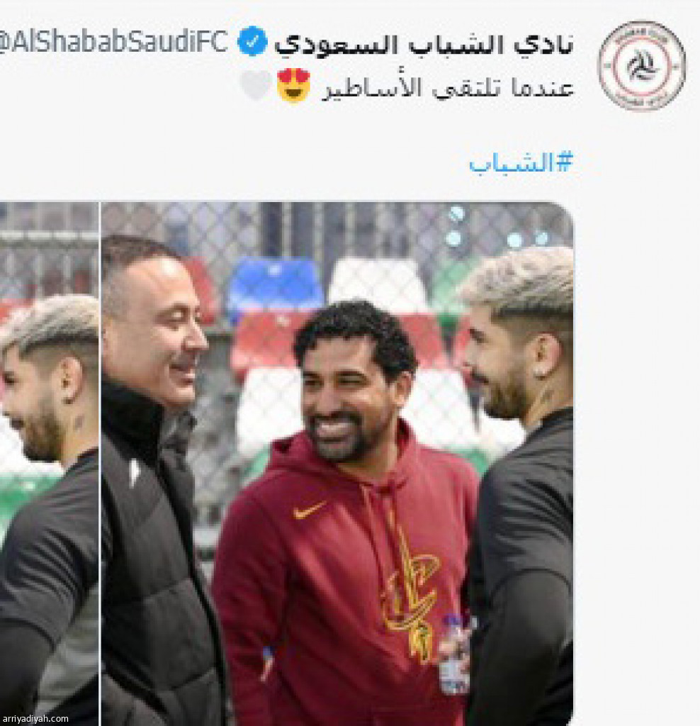 استعرض حساب نادي الشباب في تويتر صورةً من زيارة أحمد عطيف، قائد الفريق السابق، للتدريبات وتبادله الحديث مع الأرجنتيني إيفر بانيجا، القائد الحالي، وعلَّق بقوله: “عندما تلتقي الأساطير”.
