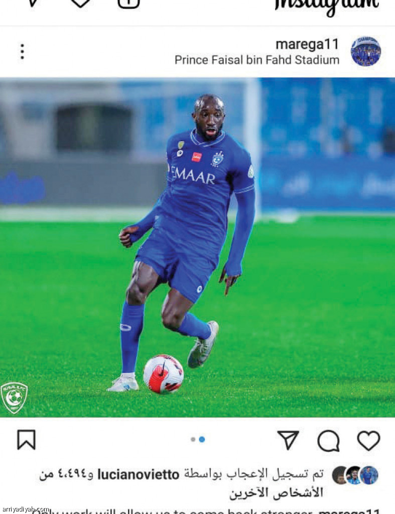 وعد المالي موسى ماريجا، مهاجم فريق الهلال الأول لكرة القدم، الجماهير الهلالية عبر حسابه في منصة إنستجرام بالعودة إلى الصدارة مجددًا.