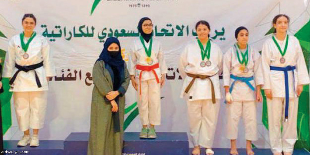 صورة التقطت أثناء تتويج الفائزات في مسابقة الناشئات ضمن منافسات بطولة السعودية للكاراتيه (المركز الإعلامي - اتحاد الكاراتيه)