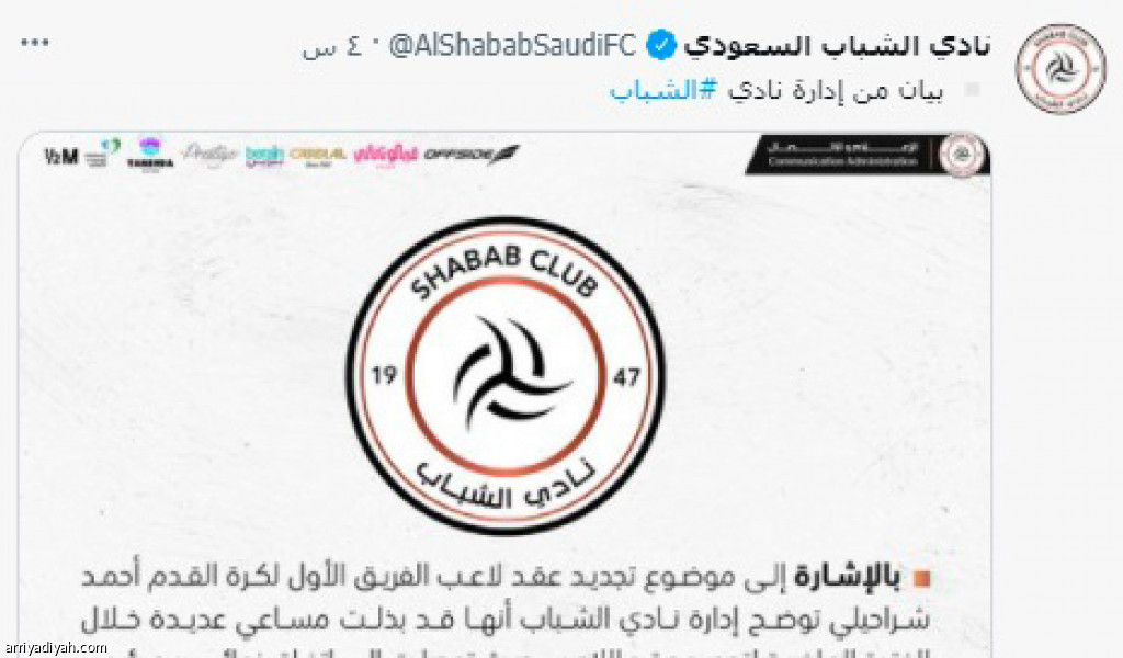 شهد منشن تغريدة حساب نادي الشباب عبر “تويتر” التي تضمنت بيان رفض أحمد شراحيلي، مدافع الفريق الأول لكرة القدم، سجالًا كبيرًا من الجماهير، والتي بلغت ردودها 2.4 ألف، كأكبر تفاعل في حساب النادي خلال الفترة الأخيرة.