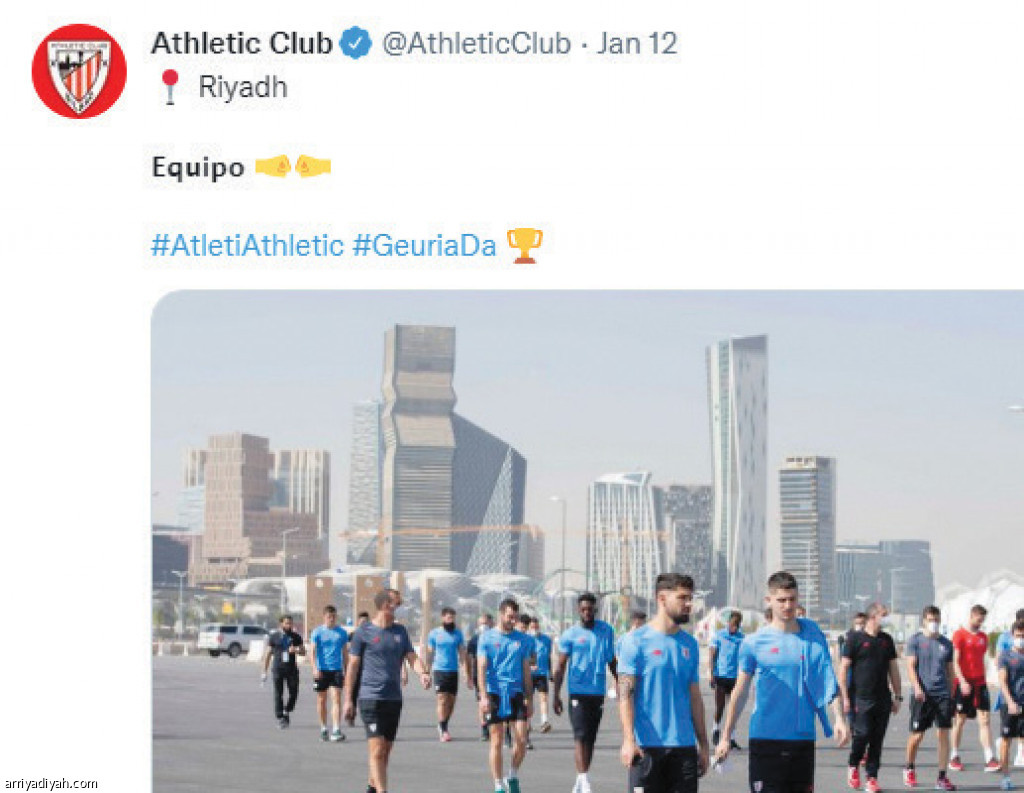 ونشرت حسابات بلباو، الذي سيواجه ريال مدريد اليوم في النهائي، على تويتر وإنستجرام وتيك توك مقطعي فيديو لجولة اللاعبين في شوارع الرياض بالقرب من المنطقة المحيطة بفندق موفنبيك، مقر سكنهم، بعد وصولهم إلى الرياض.