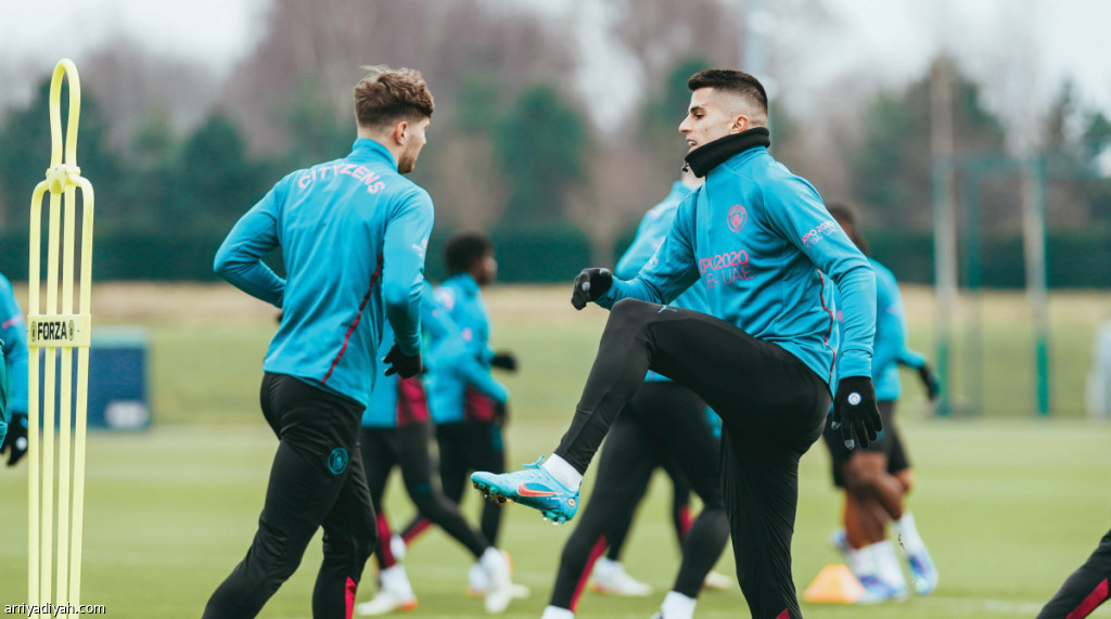 صورة التقطت أمس للبرتغالي جواو كانسيلو، مدافع فريق مانشتير سيتي، خلال الحصة التدريبية للفريق، استعدادًا لمباراة ساوثهامبتون، اليوم، في الدوري الإنجليزي (المركز الإعلامي ـ السيتي)