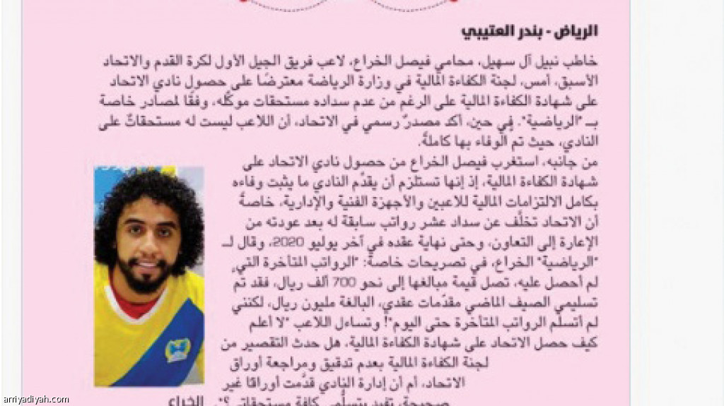 سيطر فيصل الخراع، لاعب فريق الاتحاد الأول لكرة القدم الأسبق، على التفاعل في موقع التواصل الاجتماعي “تويتر” أمس بعد تصريحه لـ”الرياضية” عن عدم حصوله على مستحقاته، واستغرابه من كيفية منح النادي شهادة الكفاءة المالية.