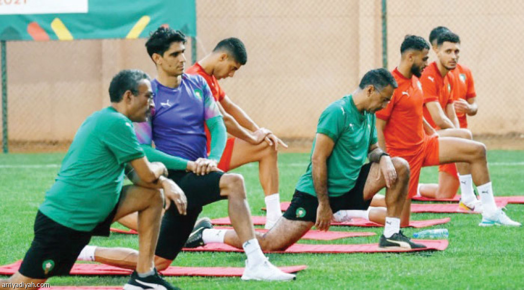 صورة التقطت أمس للاعبي المنتخب المغربي أثناء الحصة التدريبية (المركز الإعلامي - منتخب المغرب)