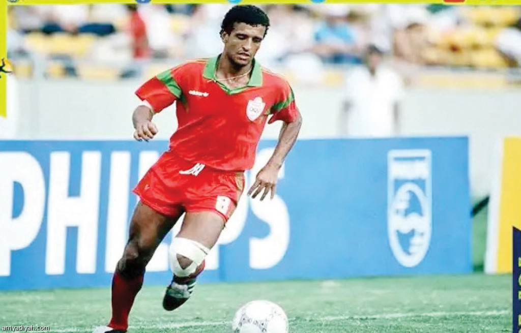 صورة التقطت لعزيز بودربالة لاعب منتخب المغرب الأول لكرة القدم الأسبق خلال مشاركته في بطولة الأمم الإفريقية 1988 (أرشيفية)