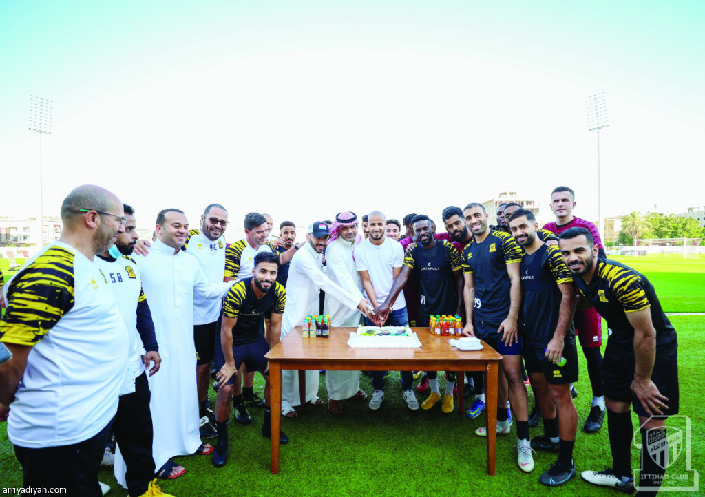 صورة التقطت أمس من تكريم المغربي كريم الأحمدي لاعب فريق الاتحاد الأول لكرة القدم بحضور اللاعبين والجهازين الإداري والفني (المركز الإعلامي ـ الاتحاد)