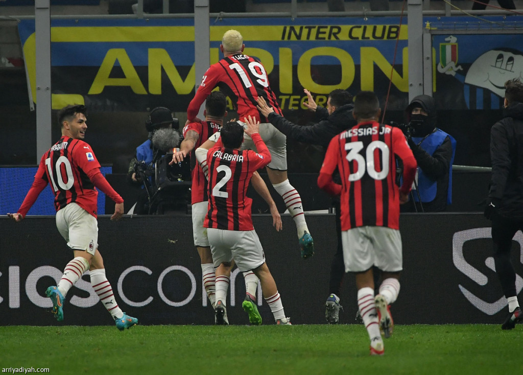 سجل أوليفييه جيرو هدفين في غضون ثلاث دقائق ليعوض ميلان تأخره ويفوز 2-1 على إنتر ميلان متصدر دوري الدرجة الإيطالي لكرة القدم السبت، ليقلص الفارق مع حامل اللقب إلى نقطة واحدة ويضع حدا لمسيرة منافسه الخالية من الهزيمة عند 14 مباراة.