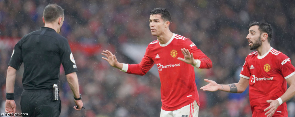 صورة التقطت أمس للبرتغالي كريستيانو رونالدو، مهاجم مانشستر يونايتد، ومواطنه فيرناندو يحتجان على قرار حكم المباراة أمام ساوثهامبتون التي انتهت بالتعادل 1ـ1 ضمن الدوري الإنجليزي (الفرنسية)