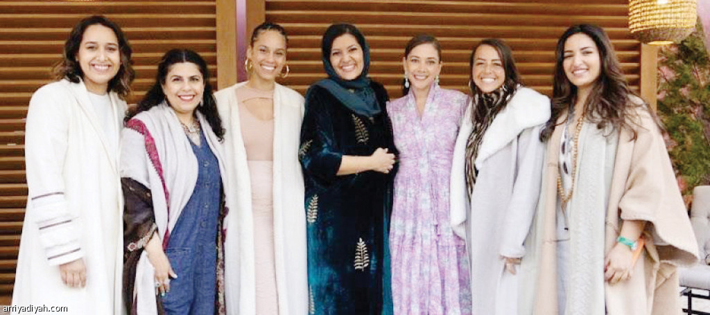 صورة التقطت أمس لريما بنت بندر آل سعود وبجانبها الأمريكية أليشيا كيز وبعض السيدات بعد نهاية لقاء “امرأة لامرأة” (المركز الإعلامي ـ العلا)
