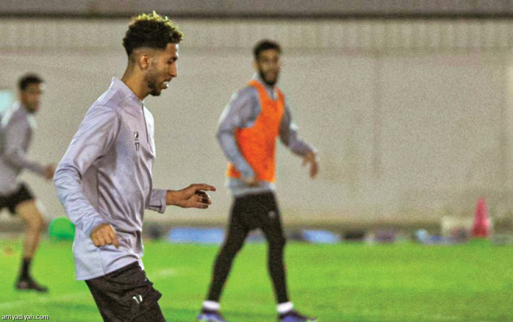 صورة التقطت أمس لهيثم الخليف لاعب فريق هجر الأول لكرة القدم أثناء التدريبات اللياقية(المركز الإعلامي ـ هجر)