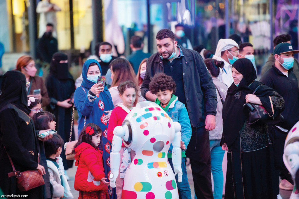 تتجول روبوتات وسط رواد منطقة “سكوير”، إحدى مناطق موسم الرياض الترفيهي، وتؤدي حركات استعراضية تجتذب زوار “بوليفارد رياض سيتي” خاصةً صغار السن.. وفي الصورة التي التقطت أمس أطفال يعاينون روبوتًا في منطقة “سكوير”