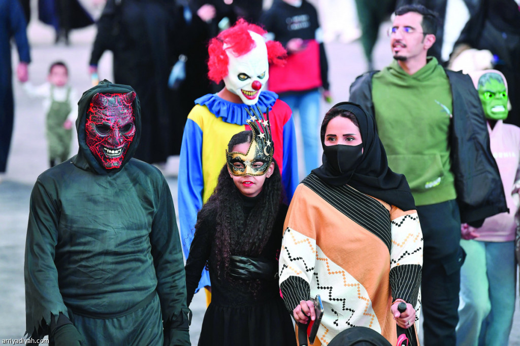 تحولت أرجاء منطقة البوليفارد إلى مسرح مفتوح لشخصيات تنكرية، ومهرجان للأزياء المدهشة، التي مزجت الغرابة بالابتكار، وشاركت في أكبر حفل تنكري مفتوح تحتضنه العاصمة السعودية على مدى يومين.. وفي الصورة زوار منطقة البوليفارد يرتدون زيًا تنكريًا ضمن الفعاليات