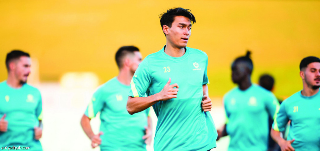 صورة التقطت أمس لكيني دوجلاس، لاعب الوسط الدفاعي، خلال الحصة التدريبية لمنتخب أستراليا استعدادًا لاستقبال اليابان غدًا (المركز الإعلامي ـ المنتخب الأسترالي)