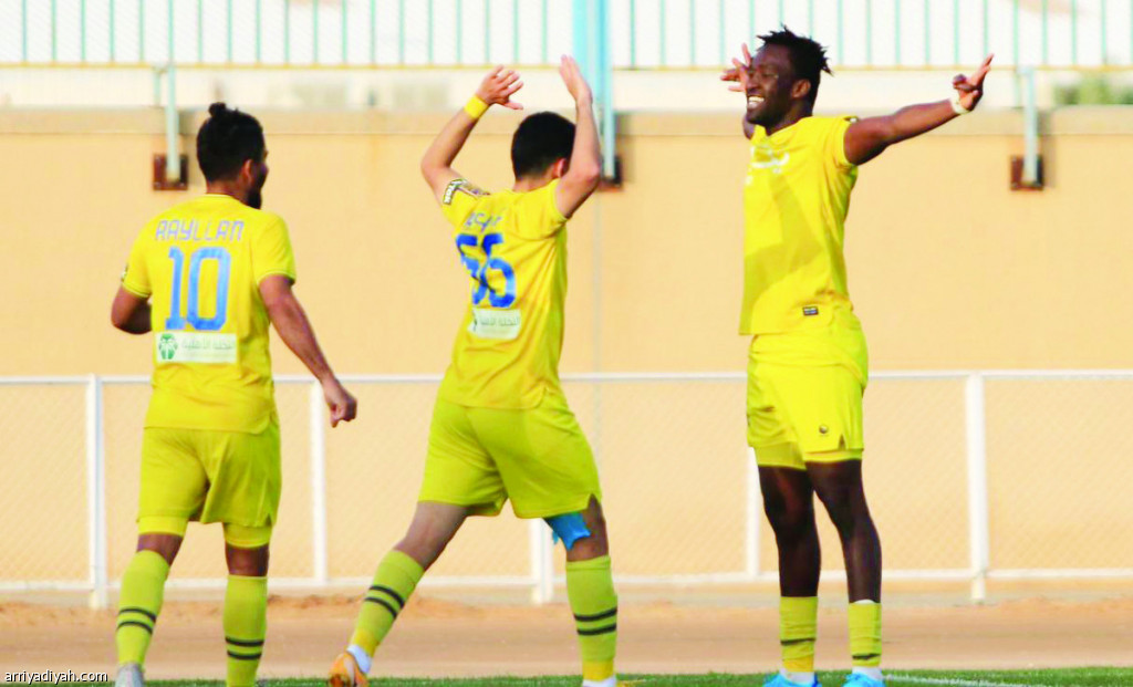 صورة التقطت أمس لأبو بكر ديارا، لاعب فريق العروبة الأول لكرة القدم، يحتفل بعد تسجيله هدف الفوز على الخلود (المركز الإعلامي ـ دوري يلو)