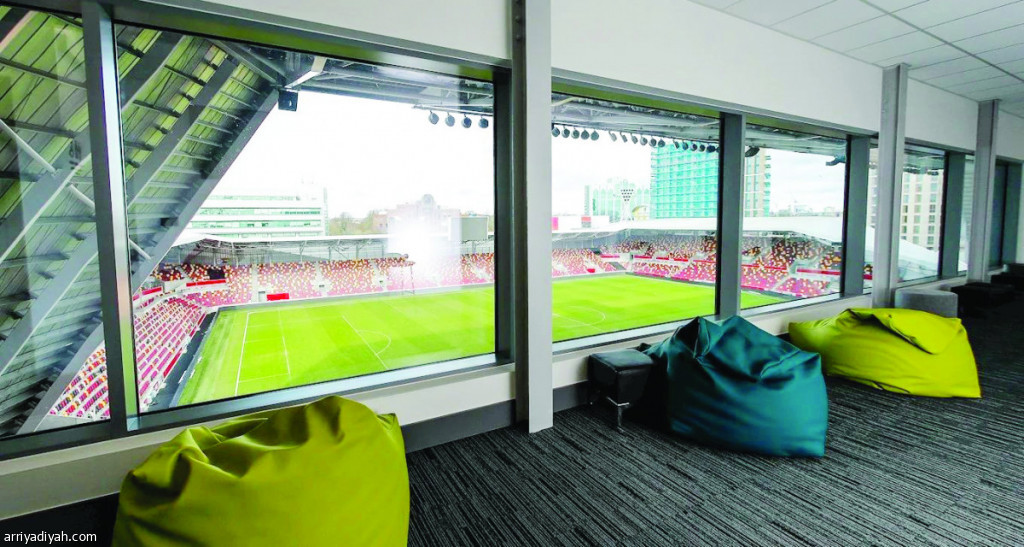 صورة التقطت لمقاعد مريحة مخصصة لمن يواجهون صعوبات في الجلوس وفرتها مؤسسة Level Play field في ملعب برنتفورد الإنجليزي (أرشيفية)